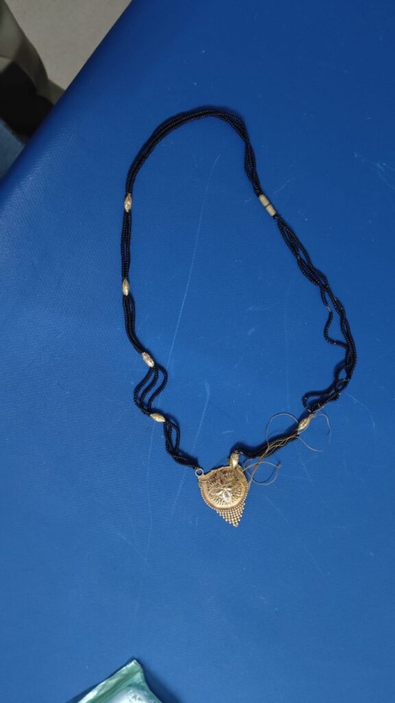 पुलिस पूछताछ में आरोपी ने अपना नाम हर्ष चंद्राकर (22 वर्ष), निवासी संगम चौक खुर्सीपार बताया। उसके कब्जे से लूटा गया सोने का मंगलसूत्र भी बरामद कर लिया गया है।आरोपी के खिलाफ भारतीय न्याय संहिता की धारा 304(2) के तहत थाना भिलाई नगर में मामला दर्ज कर आगे की कार्रवाई की जा रही है।