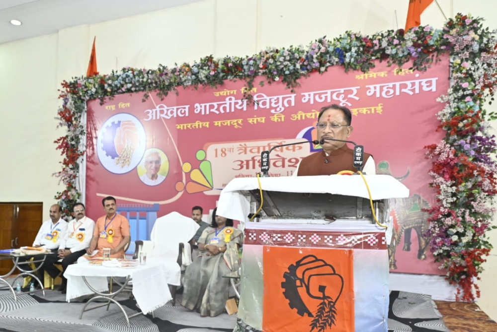 मुख्यमंत्री विष्णु देव साय गुढ़ियारी में आयोजित अखिल भारतीय विद्युत मजदूर महासंघ के 18वें त्रैवार्षिक अधिवेशन में शामिल हुए।