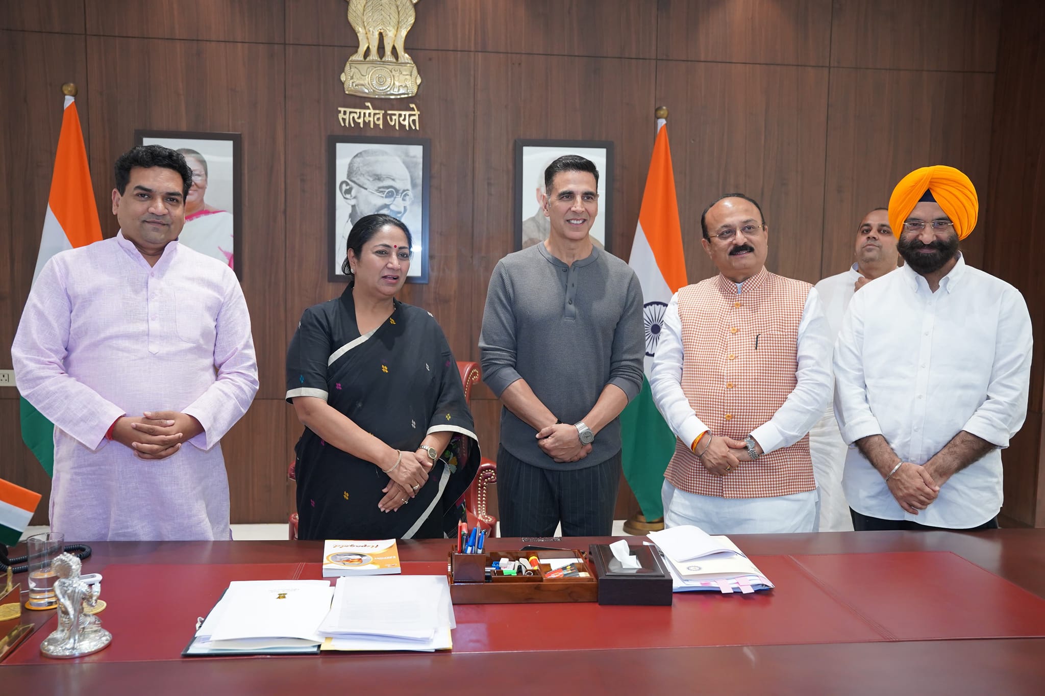 नई दिल्ली। दिल्ली सचिवालय में मुख्यमंत्री रेखा गुप्ता और उनकी कैबिनेट मंत्रियों की टीम से फिल्म अभिनेता अक्षय कुमार ने मुलाकात की। शुक्रवार को अभिनेता की फिल्म केसरी चैप्टर 2 रिलीज होने वाली है। इसी के प्रमोशन हेतु अभिनेता दिल्ली पहुंचे थे। दिल्ली मंत्रीमंडल के ज्यादातर मंत्री भी इस दौरान अपने सोशल मीडिया एकाउंट पर फिल्म केसरी चैप्टर 2 का प्रमोशन करते नजर आए। उन्होंने अभिनेता के साथ अपनी ली गई तस्वीर भी साझा की।