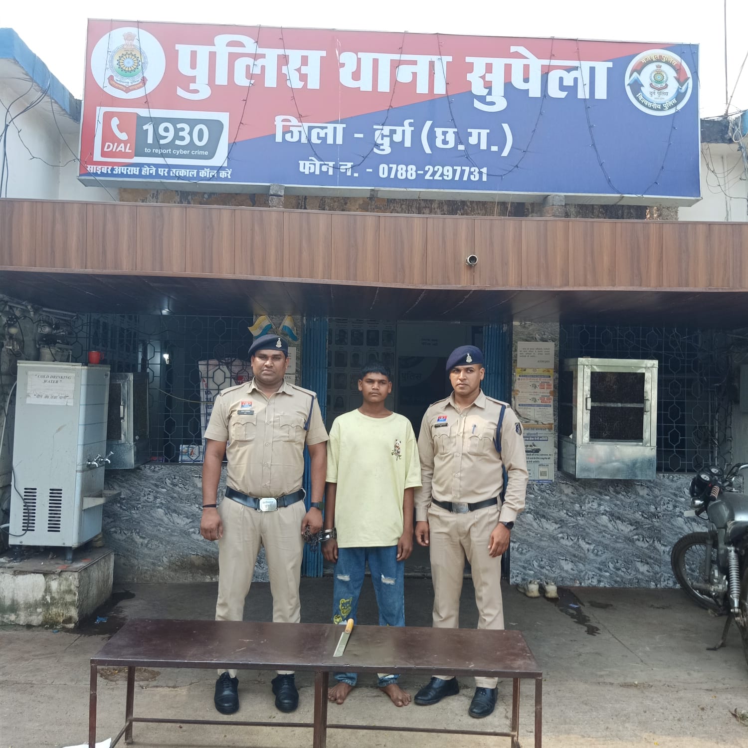 पुलिस ने बताया कि 28 अप्रैल की सुबह श्रवण कबाड़ी के पास कृष्णा नगर सुपेला के सार्वजनिक स्थान पर राज निर्मलकर एक स्टील का धारदार चाकू को लहरा कर आने-जाने वाले लोगों को धमका रहा था। सूचना प्राप्त होने पर तत्काल सुपेला पुलिस द्वारा मौके पर पहुंचकर आरोपी राज निर्मलकर को घेराबंदी कर पकड़ा गया।आरोपी के विरूद्ध थाना सुपेला में अप.क्र. 485/2025 धारा 25-27 आर्म्स एक्ट कायम कर जेल में निरूद्ध किया गया।