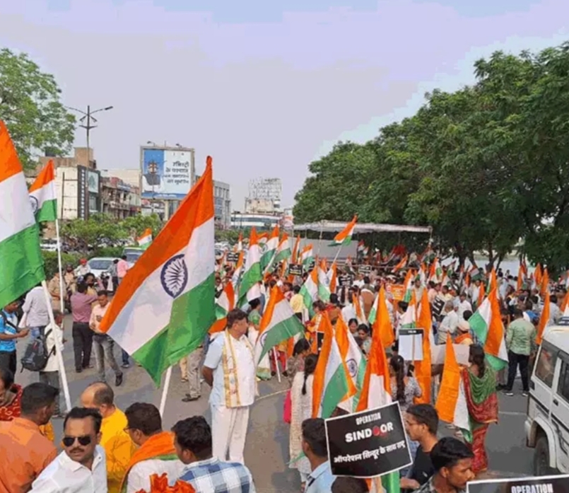 ऑपरेशन सिन्दूर की सफलता पर भाजपा ने तिरंगा यात्रा निकाला.यह यात्रा तेलीबांधा तालाब से शुरू होकर जयस्तंभ चौक पर खत्म हुयी। इस कार्यक्रम में मुख्यमंत्री विष्णु देव साय एवं अन्य जनप्रतिनिधि भी शामिल हुए।