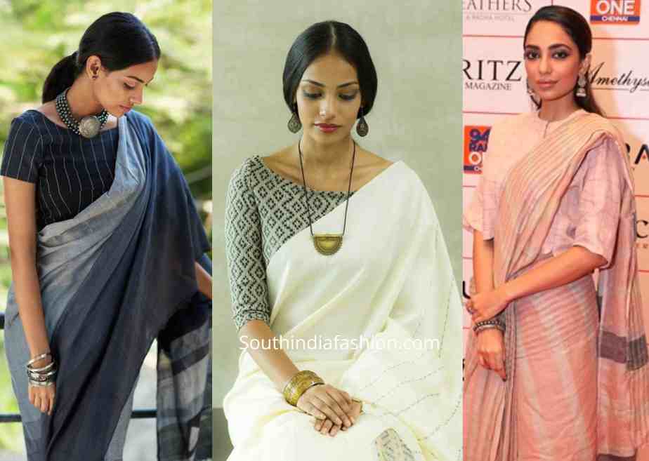 -हैंडलूम साड़ी, कोसा, सिल्क, खादी, लिनेन के हल्के रंग, ट्राइबल प्रिंट की साड़ियां आपको आत्मविश्वासी फिल कराएंगी। इन साड़ियों के साथ स्लिवलेस ब्लाउज भी खूबसूरत एहसास देगा|