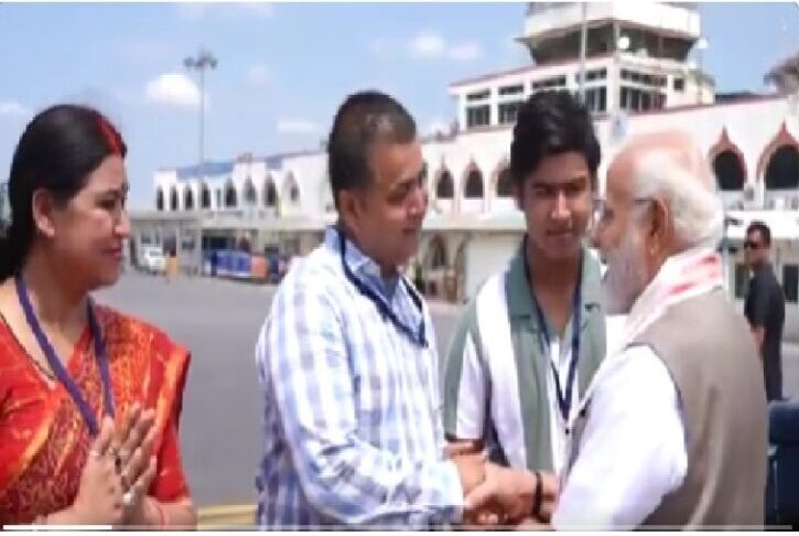 पटना। युवा क्रिकेटर वैभव सूर्यवंशी, जिन्होंने आईपीएल में धमाल मचा रखा है ने आज पटना एयरपोर्ट पर प्रधानमंत्री नरेन्द्र मोदी से मुलाकात की। इस दौरान पीएम ने वैभव के माता-पिता से भेंट की। युवा क्रिकेटर ने पीएम का आशीर्वाद लिया।