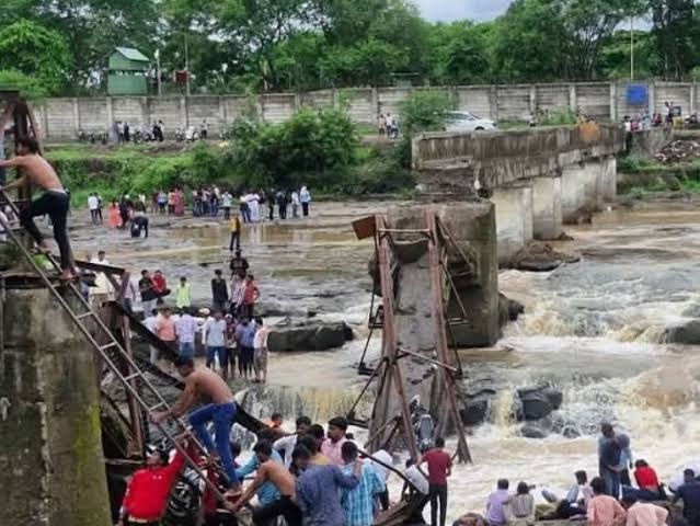 पुणे । महाराष्ट्र के पुणे में इंद्रायणी नदी में पूल टूटने से पाँच लोगों की मौत हो गई है । नदी में २५ से ३० लोगों के बहने की ख़बर है । एनडीआरएफ की टीम ने कई लोगों को बचाया है । घटना इस्थल पर मौजूद लोगों के अनुसार पुल में हादसे के दौरान १२५ लोग मौजूद थे सभी लोग बाढ़ का बहाव देखने पहुंचे थे । यह पुल काफ़ी पुराना था इसे बंद कर दिया गया था। एक साल पहले इसे तोड़े जाने का टेंडर दिया गया था। लेकिन पूल अभी तक टूटा नहीं है ।