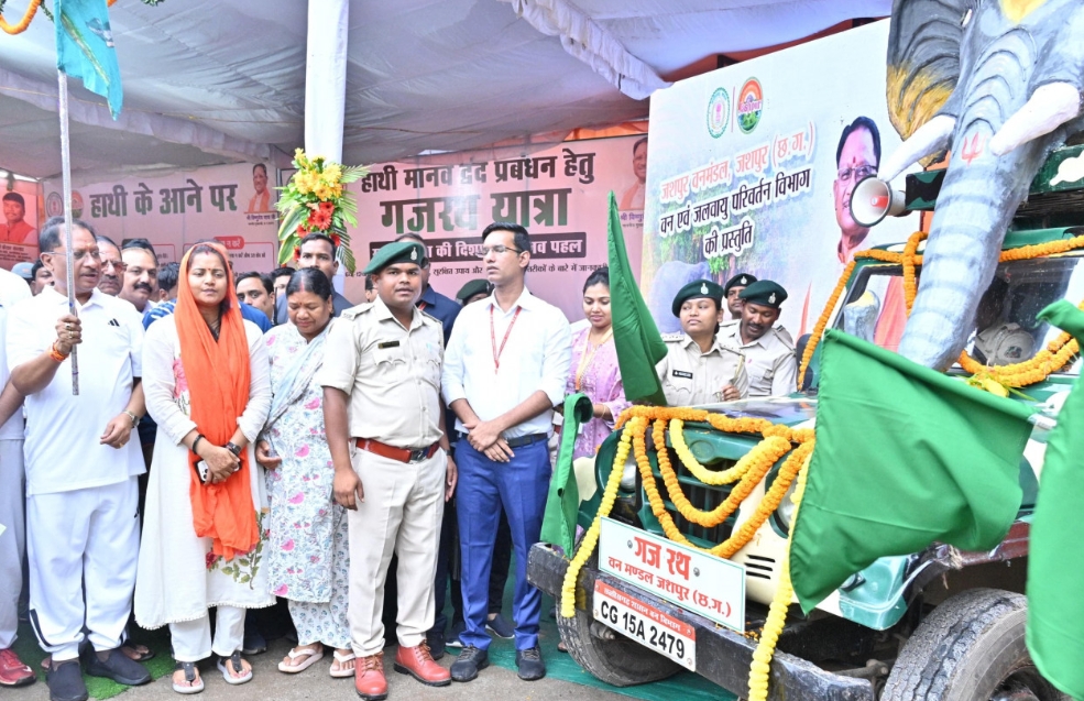रायपुर -अंतरराष्ट्रीय योग दिवस के अवसर पर मुख्यमंत्री विष्णु देव साय ने जशपुर के रणजीता स्टेडियम परिसर में आयोजित कार्यक्रम में ‘गजरथ यात्रा’ को हरी झंडी दिखाकर शुभारंभ किया। यह अभिनव पहल छत्तीसगढ़ में मानव-हाथी द्वंद को कम करने और वन्यजीव संरक्षण के लिए जनजागरूकता फैलाने के उद्देश्य से शुरू की गई है। इस यात्रा के माध्यम से स्कूलों, ग्राम पंचायतों और हाट-बाजारों में पहुंचकर हाथियों के व्यवहार, सुरक्षा उपायों और सह-अस्तित्व के संदेश को जन-जन तक पहुंचाया जाएगा।