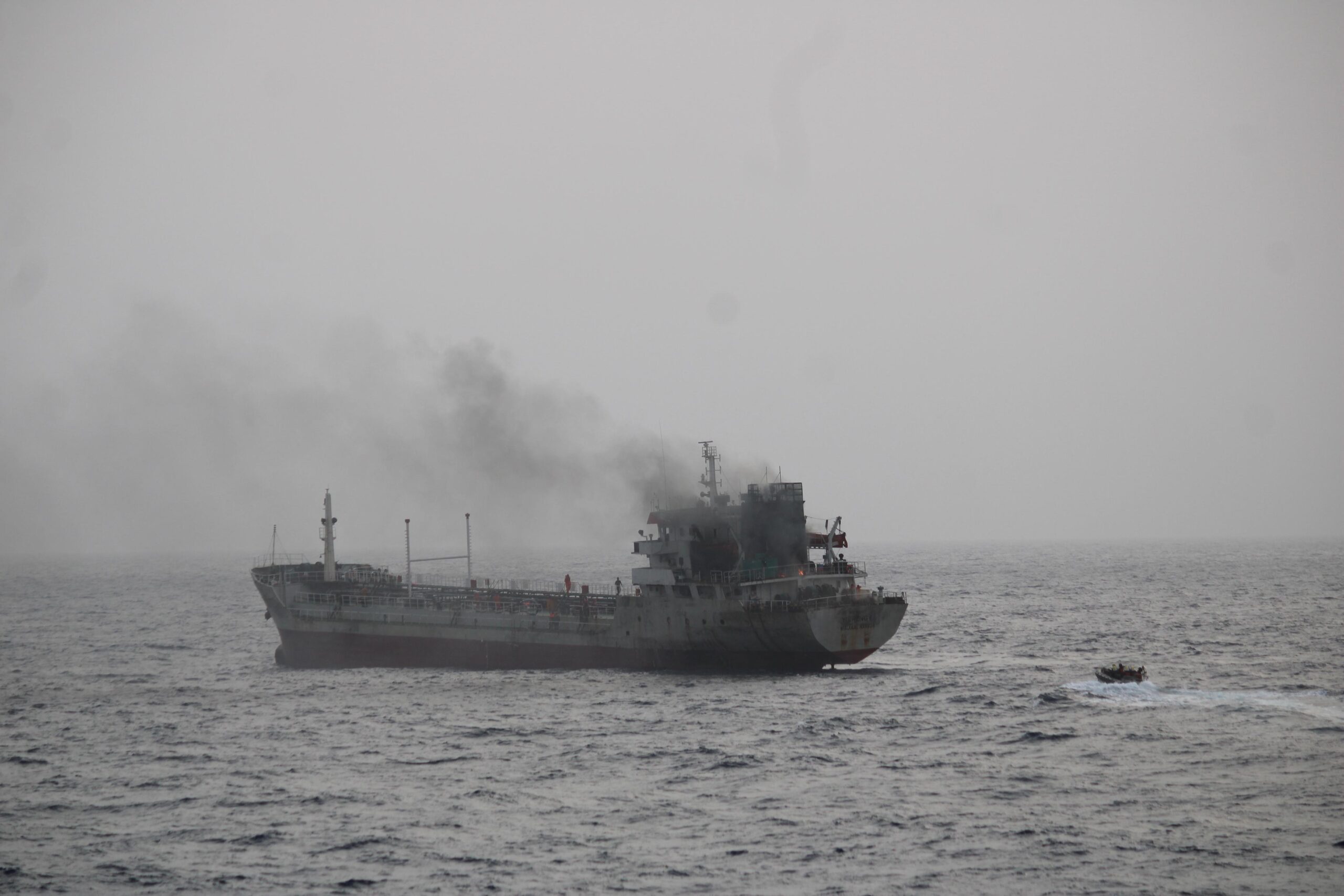 सूचना मिलते ही आईएनएस तबर सहायता प्रदान करने के लिए संकटग्रस्त जहाज के पास पहुंच गया और जहाज के मालिक से संपर्क स्थापित कर अग्निशमन अभियान शुरू किया।