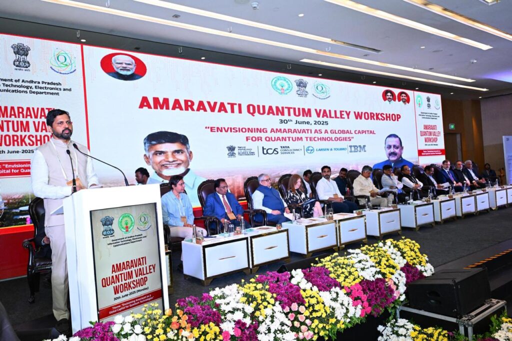 विजयवाड़ा | आंध्र प्रदेश की राजधानी अमरावती को क्वांटम घाटी का केंद्र बनाने के लिए राज्य सरकार कड़ी मेहनत कर रही है। इसके एक हिस्से के रूप में, मुख्यमंत्री नारा चंद्रबाबू नायडू ने सोमवार को नोवोटेल होटल में अमरावती क्वांटम वैली वर्कशॉप 2025 का उद्घाटन किया। इस कार्यशाला में देश-विदेश के आईटी एक्सपर्ट, आईटी कंपनियों के प्रमुखों, प्रदेश के मुख्यमंत्री नारा चंद्रबाबू नायडू, शिक्षा एवं आईटी मंत्री नारा लोकेश शामिल हुए।