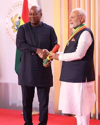 न्यूज डेस्क। घाना के राष्ट्रपति महामा द्वारा भारत के प्रधानमंत्री नरेंद्र मोदी को राष्ट्रीय अवार्ड से सम्मानित किया गया है। राष्ट्रीय अवार्ड The officer off the order off the star off Ghana से प्रधानमंत्री को सम्मानित किया गया है।