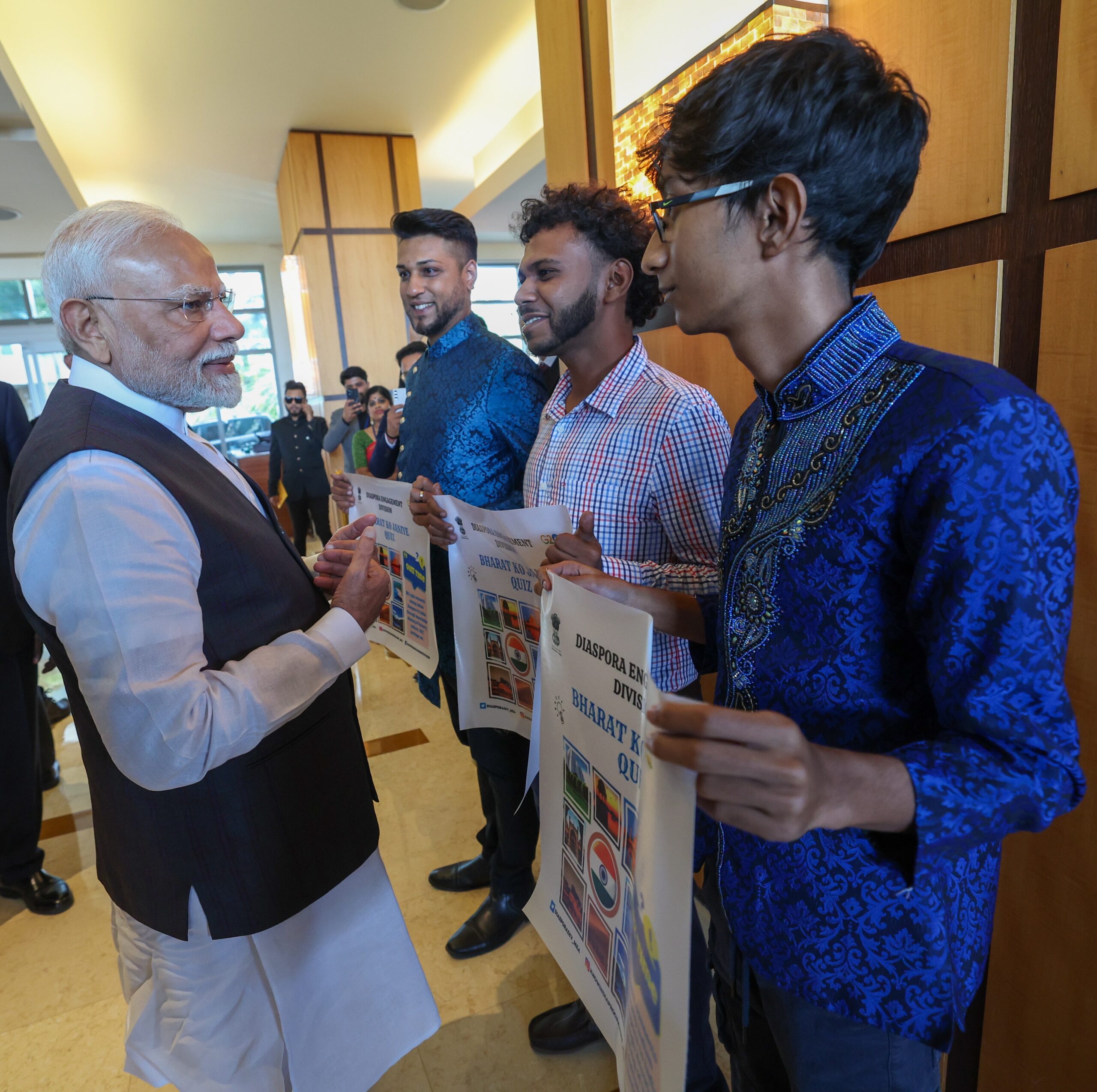 प्रधानमंत्री ने त्रिनिदाद एवं टोबैगो में ‘भारत को जानिए’ क्विज के विजेता युवाओं शंकर रामजतन, निकोलस मराज और विन्स महतो से मुलाकात की।