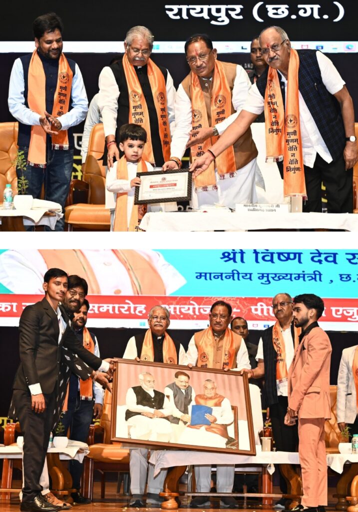 रायपुर-मुख्यमंत्री विष्णु देव साय ने रायपुर स्थित पं. दीनदयाल उपाध्याय ऑडिटोरियम में आयोजित पीएसवाय उत्कृष्टता सम्मान समारोह में विभिन्न विधाओं के प्रतिभावान छात्र-छात्राओं और उत्कृष्ट प्रदर्शन करने वाले स्कूलों को सम्मानित किया।