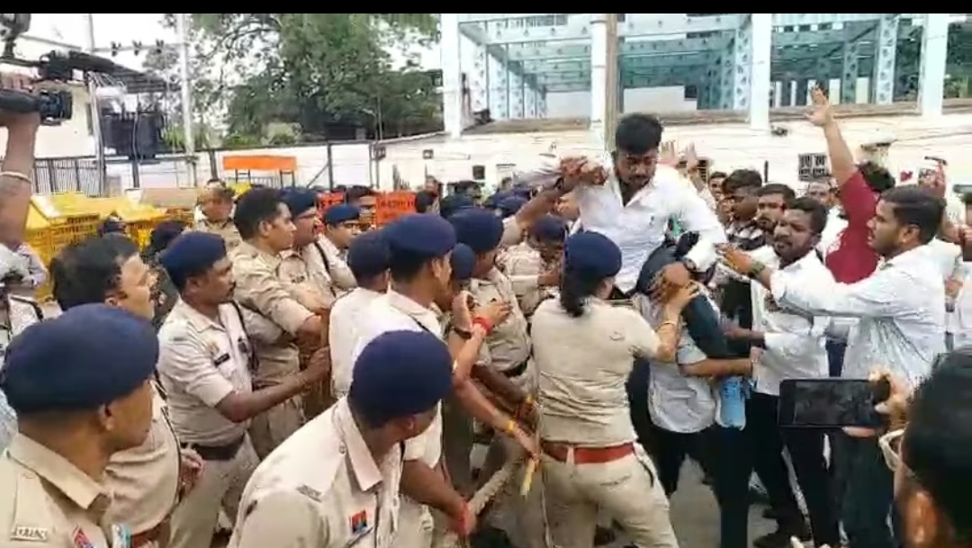 रायपुर -पूर्व सीएम भूपेश बघेल के बेटे चैतन्य बघेल की गिरफ़्तारी को लेकर ईडी कार्यालय के बाहर प्रदर्शन.बड़ी संख्या में कांग्रेस के कार्यकर्ता नारेबाजी करते हुए प्रदर्शन किया.प्रदर्शन के दौरान पुलिस और कांग्रेस कार्यकर्ताओं की बीच हुई झूमाझटकी.
