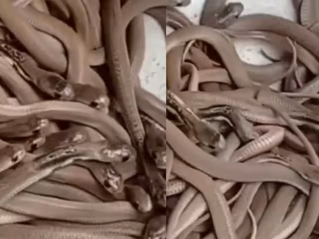 वड़ोदरा। वड़ोदरा के कुशीनगर में कटया थाना क्षेत्र के बटेसरा गांव में एक ही घर से एक साथ 25 सांप के निकलने से हड़कंप मच गया। कोबरा और उसके 24 बच्चे निर्माण के दौरान मांद बना रखे हुए थे। घटना रहीम अलिमान के घर की है जहां खुदाई कार्य चल रहा था। सर्प मित्र शत्रुघ्न यादव की मदद से सभी सांप को डिब्बे में बंद करके बाद में जंगल में छोड़ दिया गया।