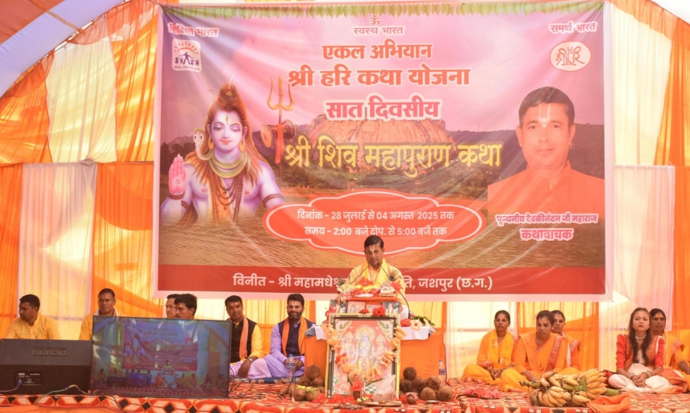 श्रावण मास की इस सात दिवसीय दिव्य कथा श्रृंखला का आयोजन 28 जुलाई से 4 अगस्त तक महामधेश्वर धाम समिति द्वारा किया गया, जिसमें अयोध्या के प्रसिद्ध कथावाचक देवकीनंदन ठाकुर महाराज ने शिव महापुराण की अमृतमयी वाणी से हजारों श्रद्धालुओं को मंत्रमुग्ध किया। मुख्यमंत्री ने व्यासपीठ से जुड़े सभी संतजनों को प्रणाम करते हुए समिति को भव्य आयोजन के लिए बधाई एवं आभार प्रकट किया।