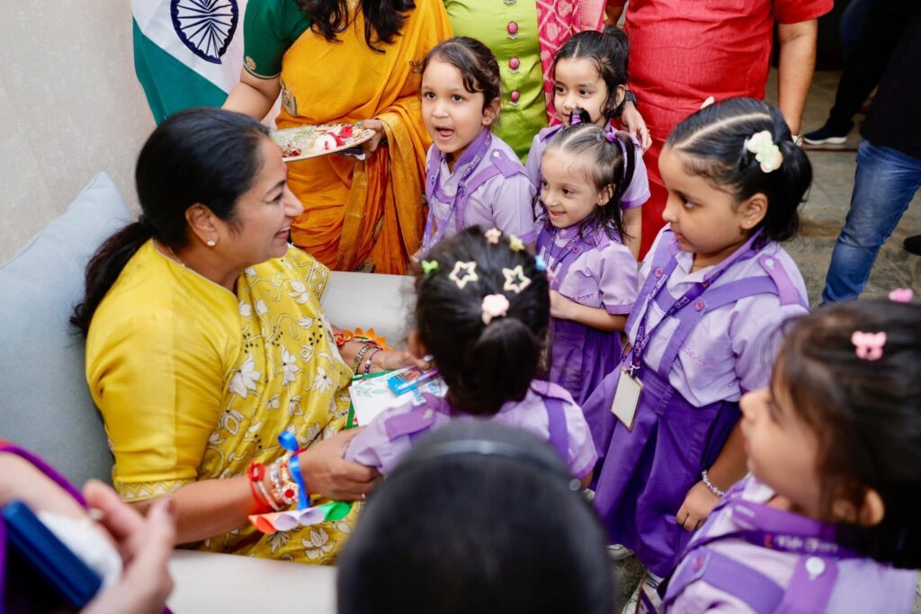 नई दिल्ली । सीएम रेखा गुप्ता ने बच्चों से राखी बंधवा कर उनकी बेहतर शिक्षा और भविष्य का वादा किया । आज दिल्ली के सेवासदन में उन्होंने स्कूल के छोटे बच्चों से राखी बंधवाई। इस मौके पर सीएम ने उन्हें आशीर्वाद और उपहार दिए। यह पल काफ़ी मनमोहक रहा। सीएम ने इसकी तस्वीरें अपने सोशल मीडिया अकाउंट पर शेयर की हैं जो काफ़ी वायरल हो रहा है ।