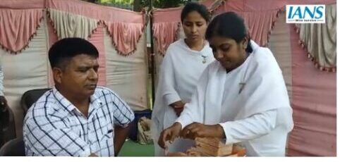 आईएनएस की एक वीडियो में बहनें राखी बांधती हुईं।