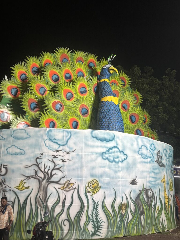 भिलाई। भिलाई सेक्टर २ में भी शहरवासी गणेशोत्सव का आनंद सपरिवार ले सकते हैं। यहाँ नाचते मोर का पंडाल आकर्षण का केंद्र है । गणपति की विशाल प्रतिमा के दर्शन आपको यहाँ होने वाले हैं।इसके अलावा यहाँ लगे मेले और झूलों का आनंद भी आप उठा सकते हैं। यहां एंट्री फ्री है।