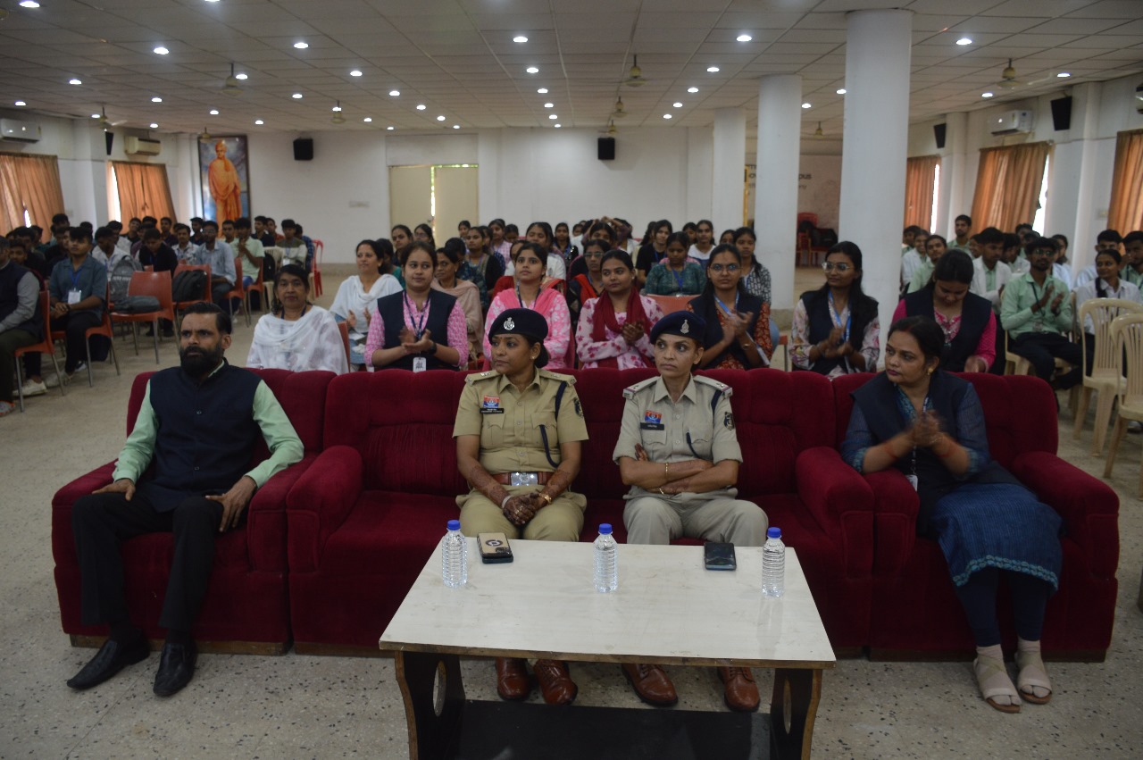 अतिरिक्त पुलिस अधीक्षक पद्मश्री तंवर (आई.यू.सी.ए.डब्ल्यू) द्वारा उपस्थित छात्र छात्राओं एवं शिक्षक शिक्षिकाओं को कार्य स्थल में होने वाले यौन उत्पीड़न संबंधी संपूर्ण जानकारी दी गई एवं सोशल मीडिया की जानकारी, महिला संबंधी अपराध, नशे के उपयोग से होने वाली समस्या के बारे में एवं नशे से मुक्त होने के विभिन्न प्रकार की जानकारी दी गई।