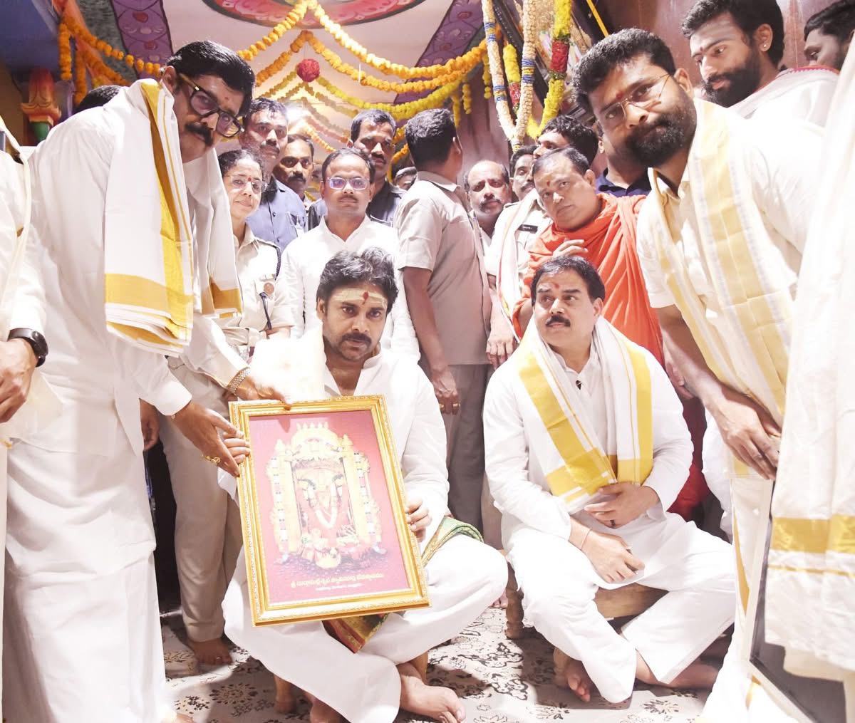 राज्य के उपमुख्यमंत्री पवन कल्याण ने सोमवार शाम को विजयवाड़ा इंद्रकिलाद्रि पर माँ कनकदुर्गा मंदिर का दौरा किया। आज से दशहरा सरणरात्री उत्सव शुरू हो गया है। अनम रामनारायण रेड्डी, टेम्पल ईवीओ, वेद पंडितों ने पवन कल्याण का सम्मान किया। उप मुख्यमंत्रियों के साथ, राज्य के नागरिक आपूर्ति मंत्री श्नादेंदला मनोहर ने मंदिर स्थल का दौरा किया। बाद में वेद पंडितों ने आशीर्वाद दिया।