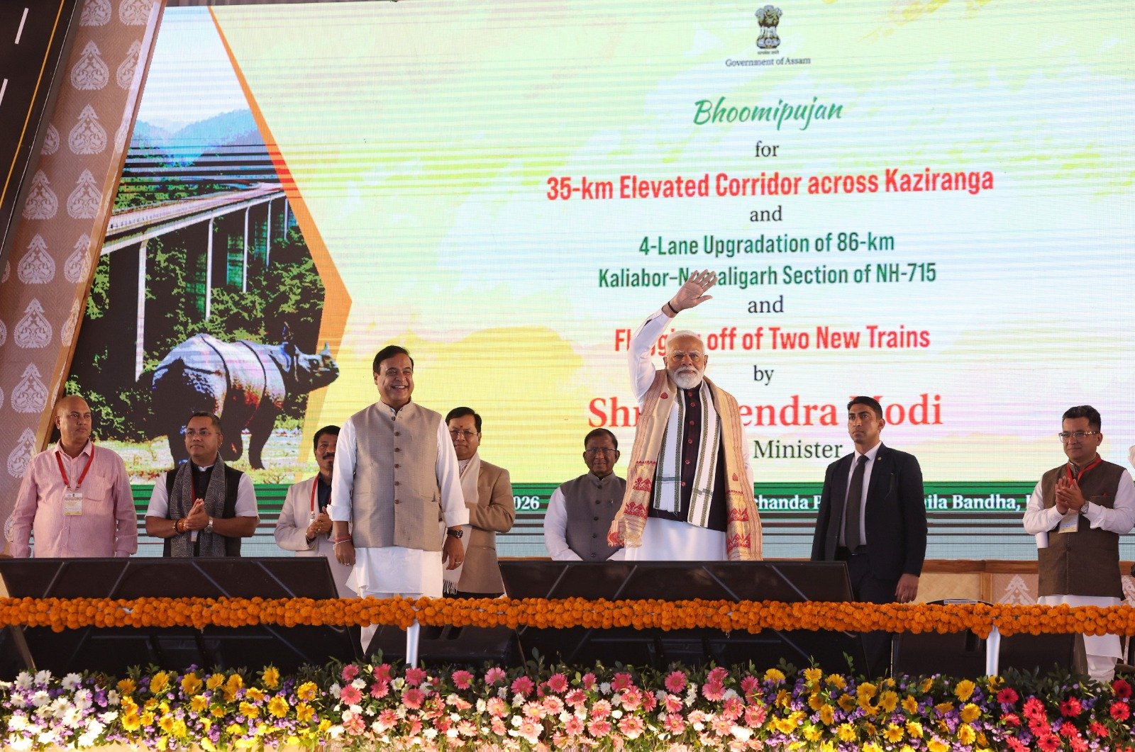 kaliyabor| प्रधानमंत्री नरेन्द्र मोदी ने आज असम के कालियाबोर में 6,950 करोड़ रुपये से अधिक की लागत वाली काजीरंगा एलिवेटेड कॉरिडोर परियोजना के भूमि पूजन में अपनी भागीदारी की झलकियां साझा की।